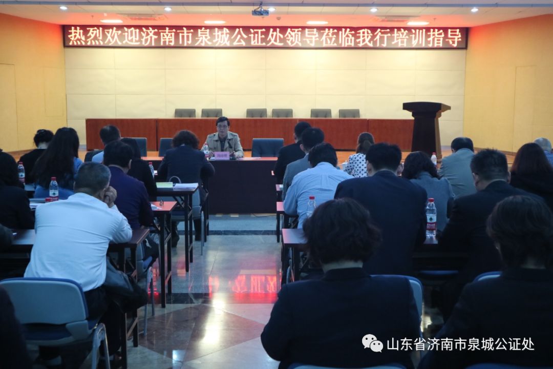 为强化银行公证法律意识,促进银行公证业务的开展,近日,工商银行济南历下支行邀请泉城公证处为其进行金融与公证主题培训,此次培训系泉城公证处首次为国有四大行之一的银行举办公证专题培训。培训班由济南市泉城公证处业务副主任冯培明进行授课,工商银行济南历下支行各部门经理、泉城公证处金融一部和研究室相关人员共计50余人参加了培训。