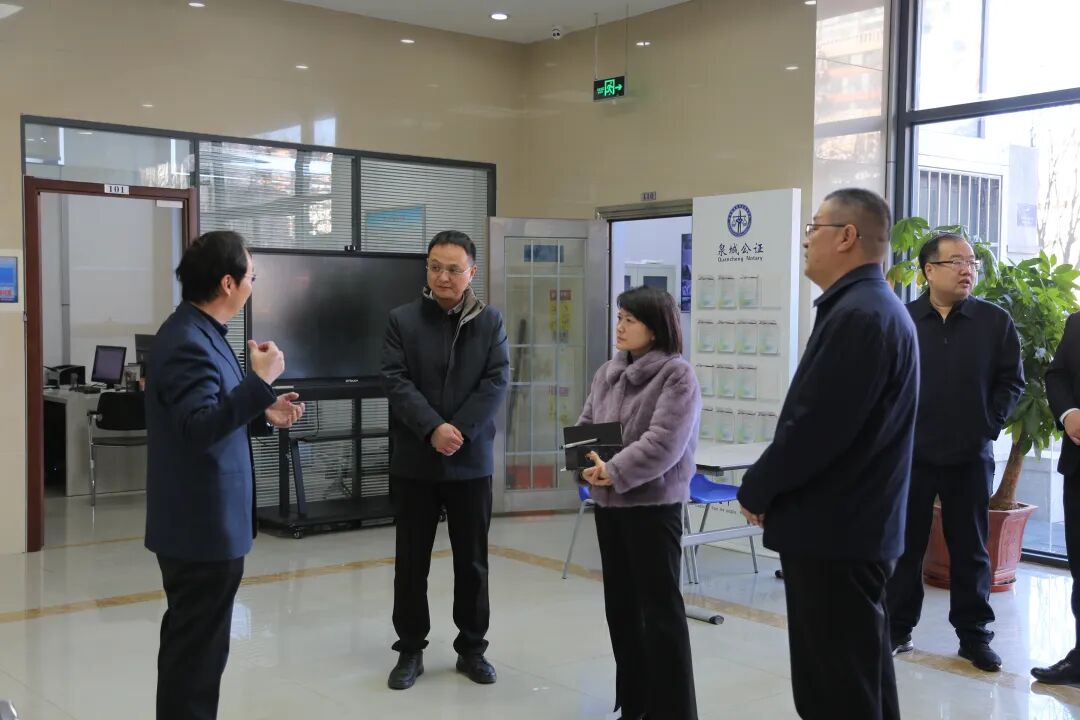 调研组一行先后参观了我处总部服务大厅、党员公证员服务窗口以及党建、综合文化展示区等办公区域。在座谈中,泉城公证处详细介绍了自身发展历程、业务创新、业务开展等情况,深入了解结对单位的实际状况、业务动态和现实需求。双方就落实公证体制机制改革、优化公证服务、拓展公证业务等方面遇到的困难与问题,进行了探讨交流。