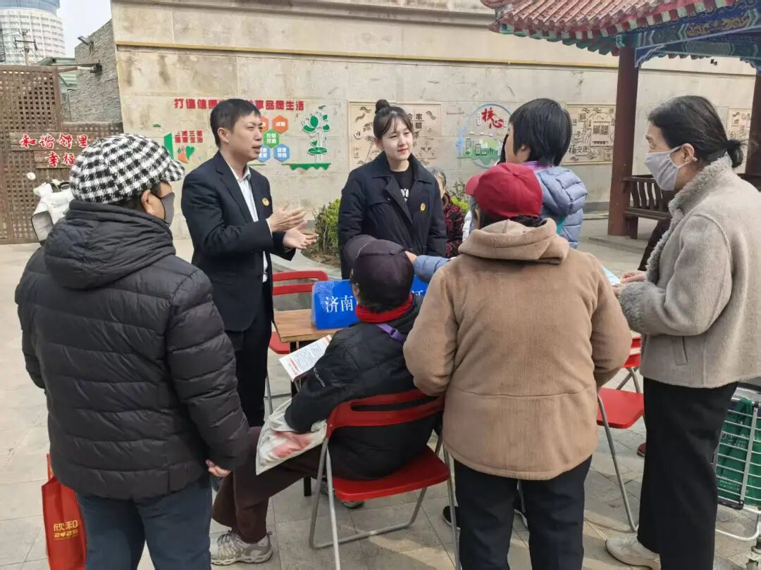 3月13日,济南市泉城公证处公证人员走进乐山小区社区,联合银行、保险机构等多个行业共同开展公益普法活动,把法律知识、金融安全提示与公证便民服务送到居民家门口。
