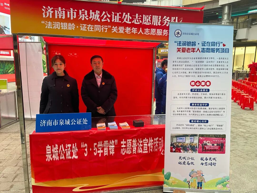 3月5日,泉城公证处走进馆驿街社区 “爱心集市”,开展学雷锋主题公证普法宣传活动,以实际行动践行志愿服务精神,打通服务群众 “最后一公里”。